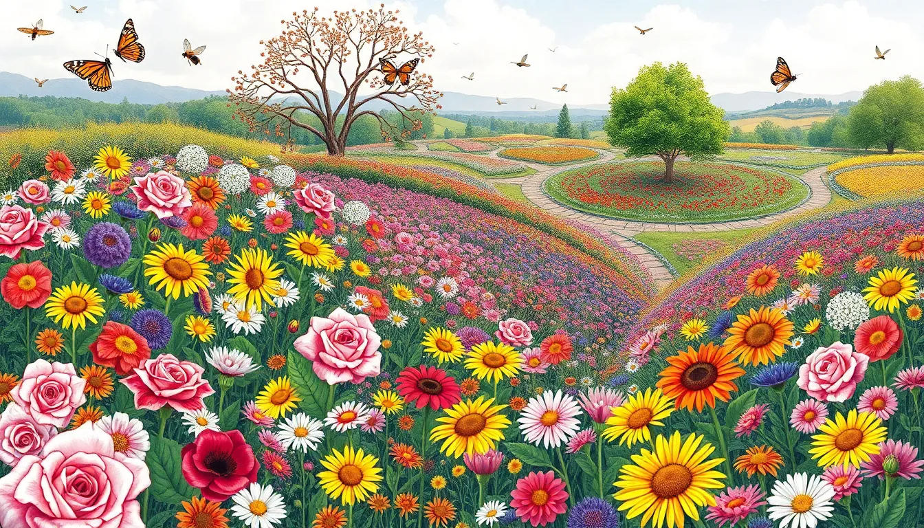 Flower garden designs offer intricate patterns featuring diverse blooms and foliage. These designs often include popular flowers like roses, daisies, and sunflowers, allowing for vibrant splashes of color. Users can experiment with their favorite hues, exploring combinations that reflect personal style. Many pages also feature garden elements such as butterflies and bees, enhancing the overall aesthetic. Engaging with these intricate designs nurtures artistic expression and introduces the joy of gardening through art.